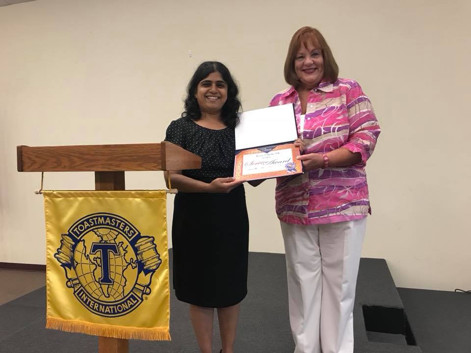 Received the Toastmaster of the Year Award for the second consecutive year from Airport Toastmasters, recognizing continued leadership, service, and commitment to member development.