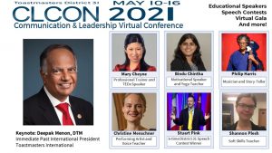 May 11, 2021 | District 31 Toastmasters, Boston, MA Invited to present an education session titled Becoming Unstoppable at the District 31 Annual Conference (CLCON-21)