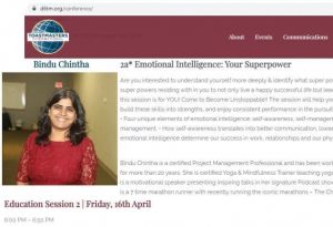 April 16, 2021 | D6 Toastmasters Invited to present a workshop titled Emotional Intelligence in Action at the Spring Conference of Toastmasters International District 6,
